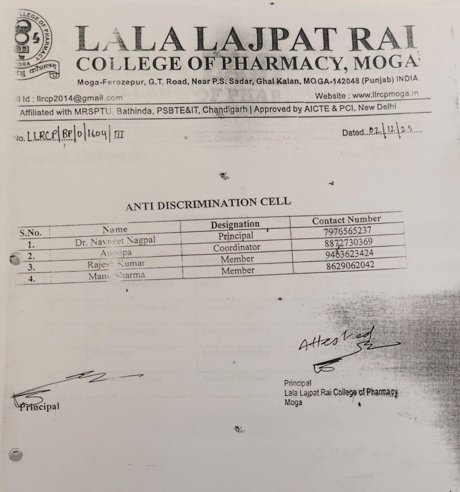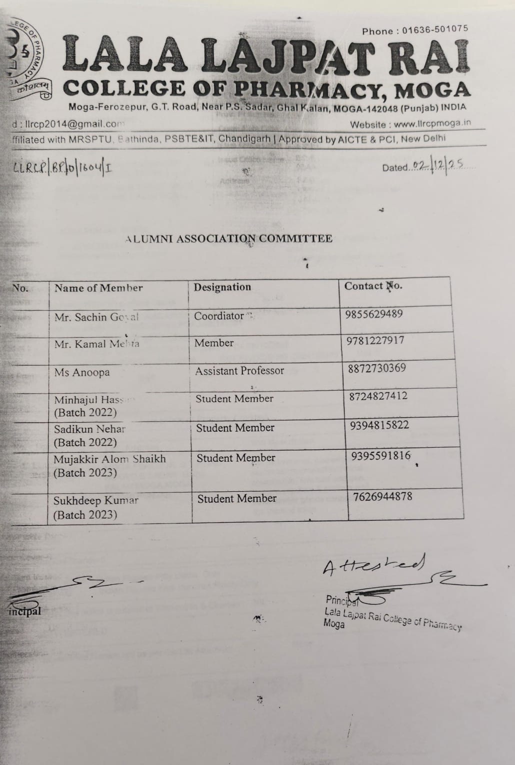 ਲਾਲਾ ਲਾਜਪਤ ਰਾਏ ਕਾਲਜ ਆਫ਼ ਫਾਰਮੇਸੀ, ਮੋਗਾ (ਪੰਜਾਬ)